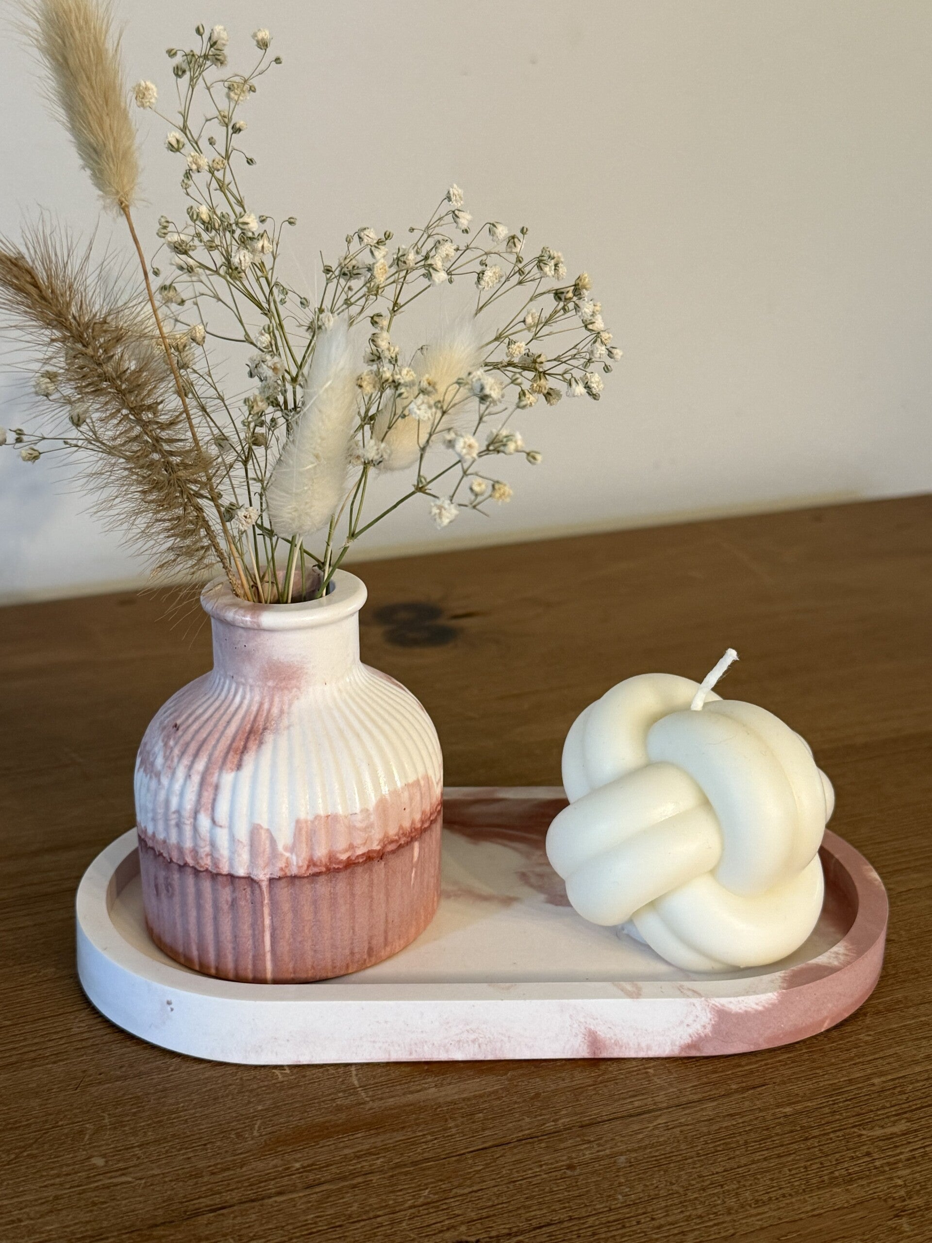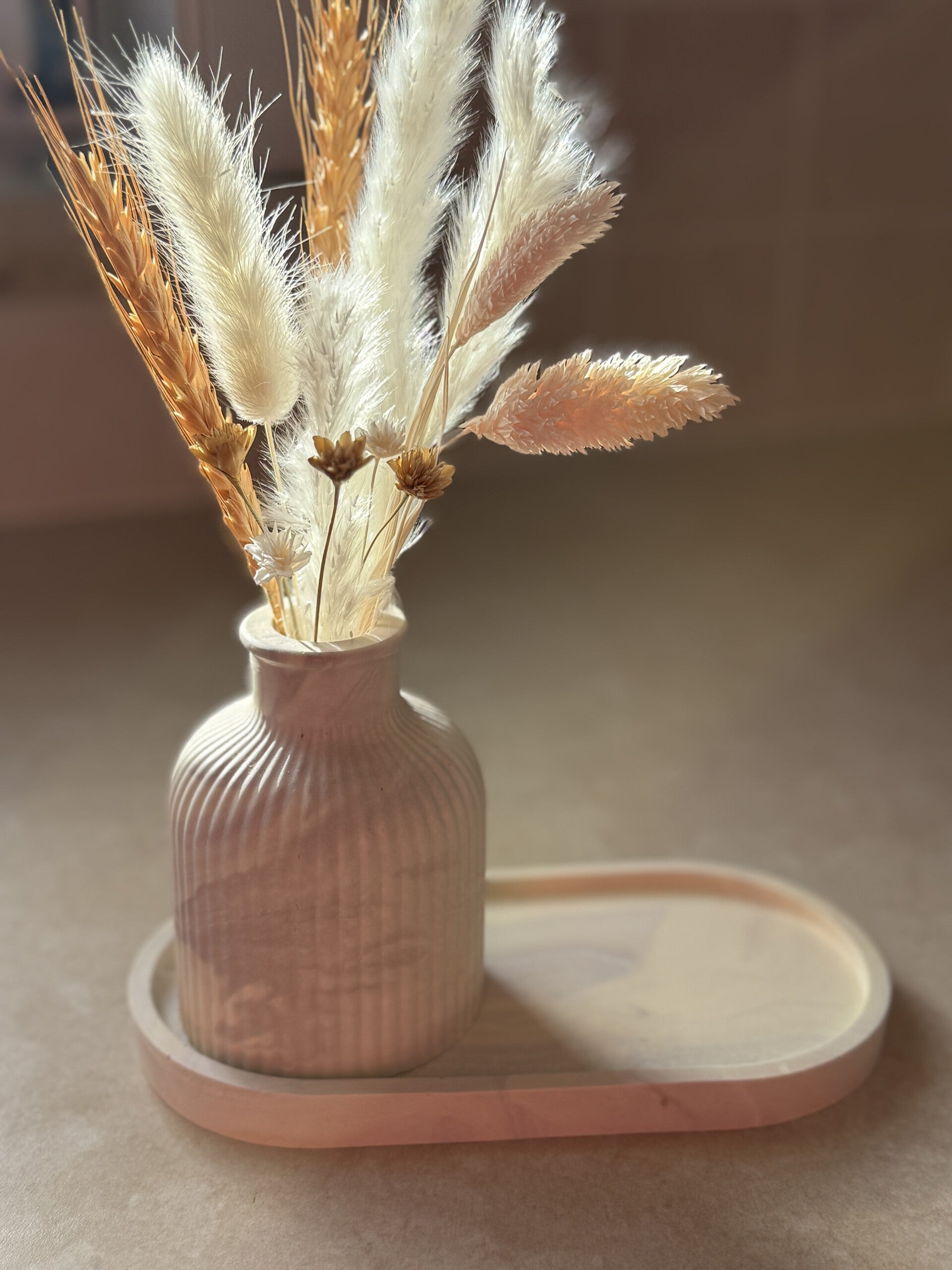 Set: 1 vaasje met droogbloemen + 1 ovaal dienblad