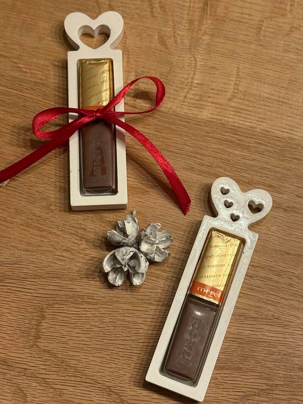 Deze schattige cadeauhouders zijn met de hand gegoten uit raysin. Elke houder heeft een feestelijke vorm (hartje, hartjes, cadeautje of envelop met hartje) en is ontworpen om een (Merci-)chocolaatje, een bankbiljet of lief briefje in te plaatsen. Je kan dit eventueel afwerken met een mooi lintje.