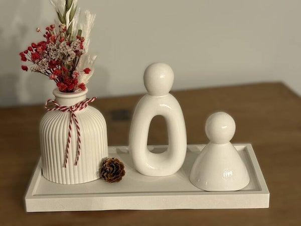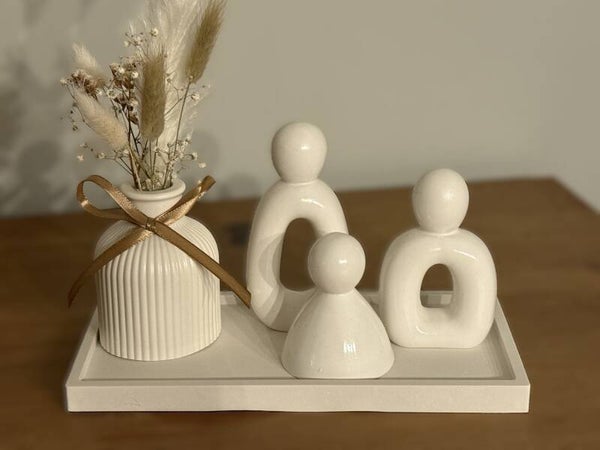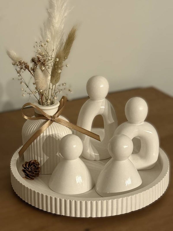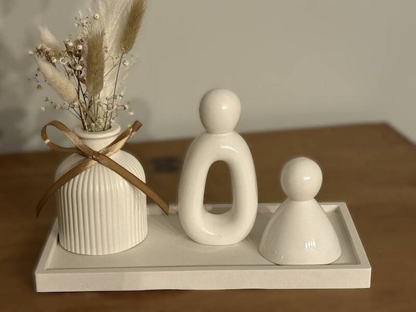 Deze prachtige handgemaakte figuren van Raysin brengen een serene en moderne sfeer in huis. Door hun zachte, matte afwerking en abstracte vormgeving passen ze perfect in elk interieur.
