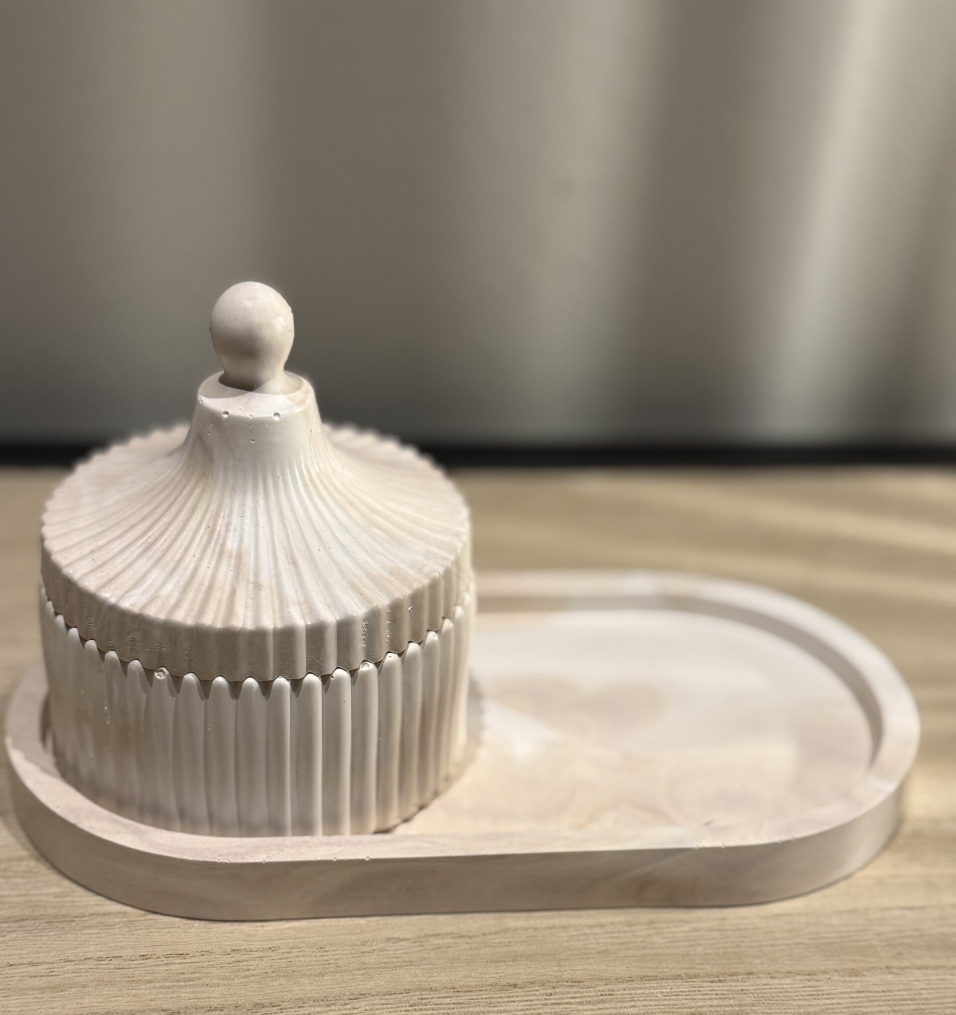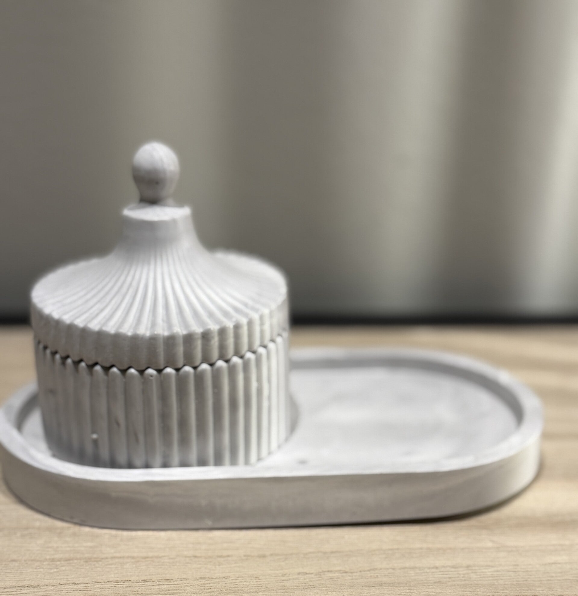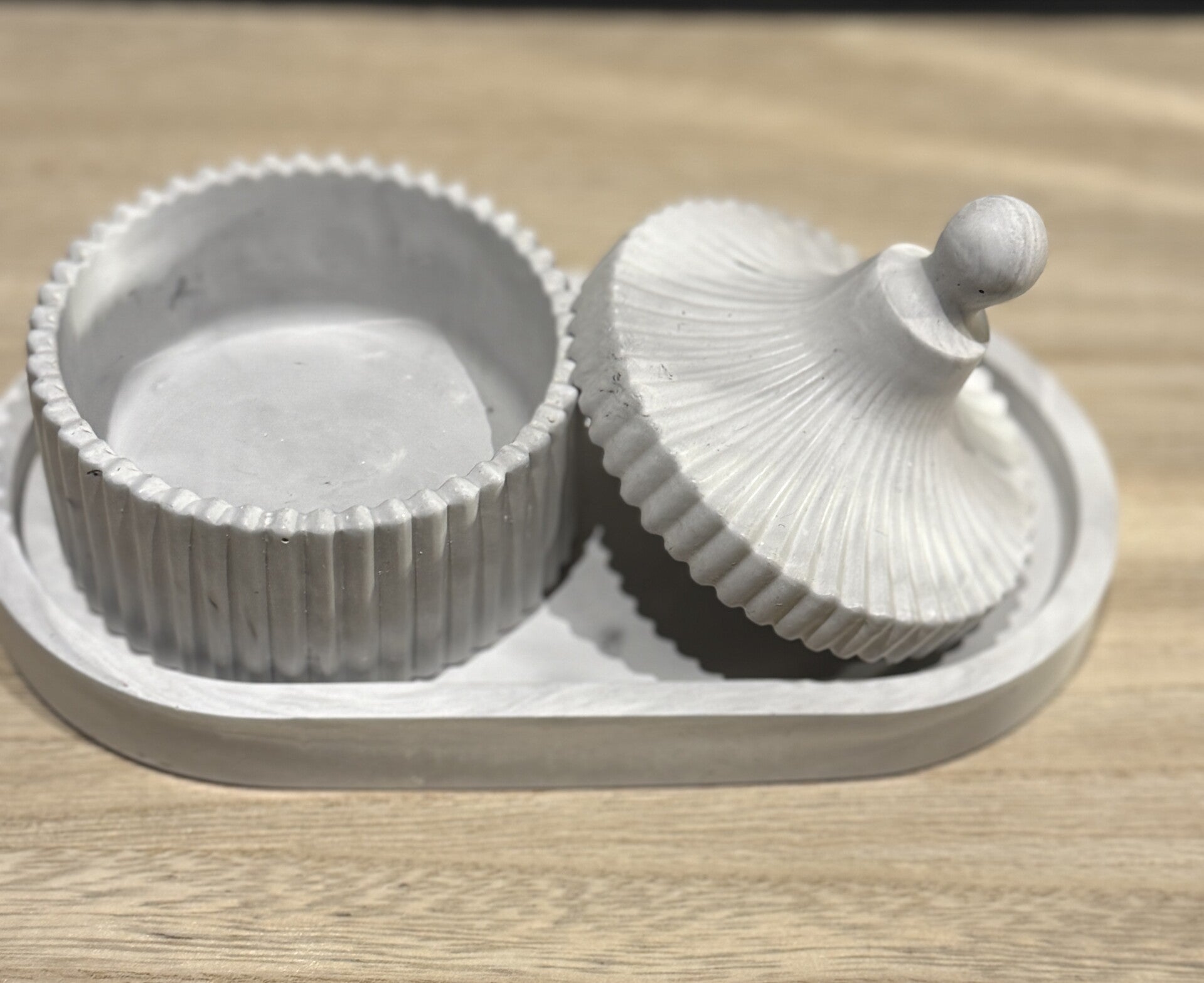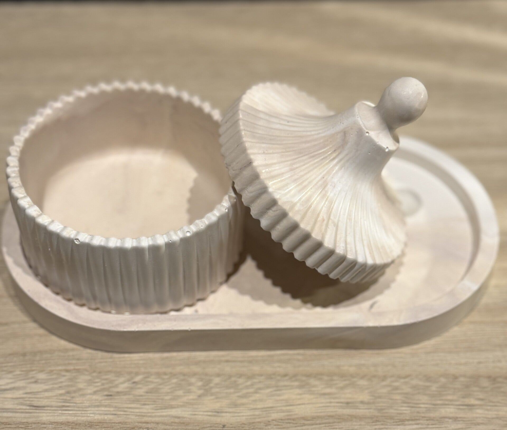 Ovaal schaaltje met potje in ribbelstructuur met deksel