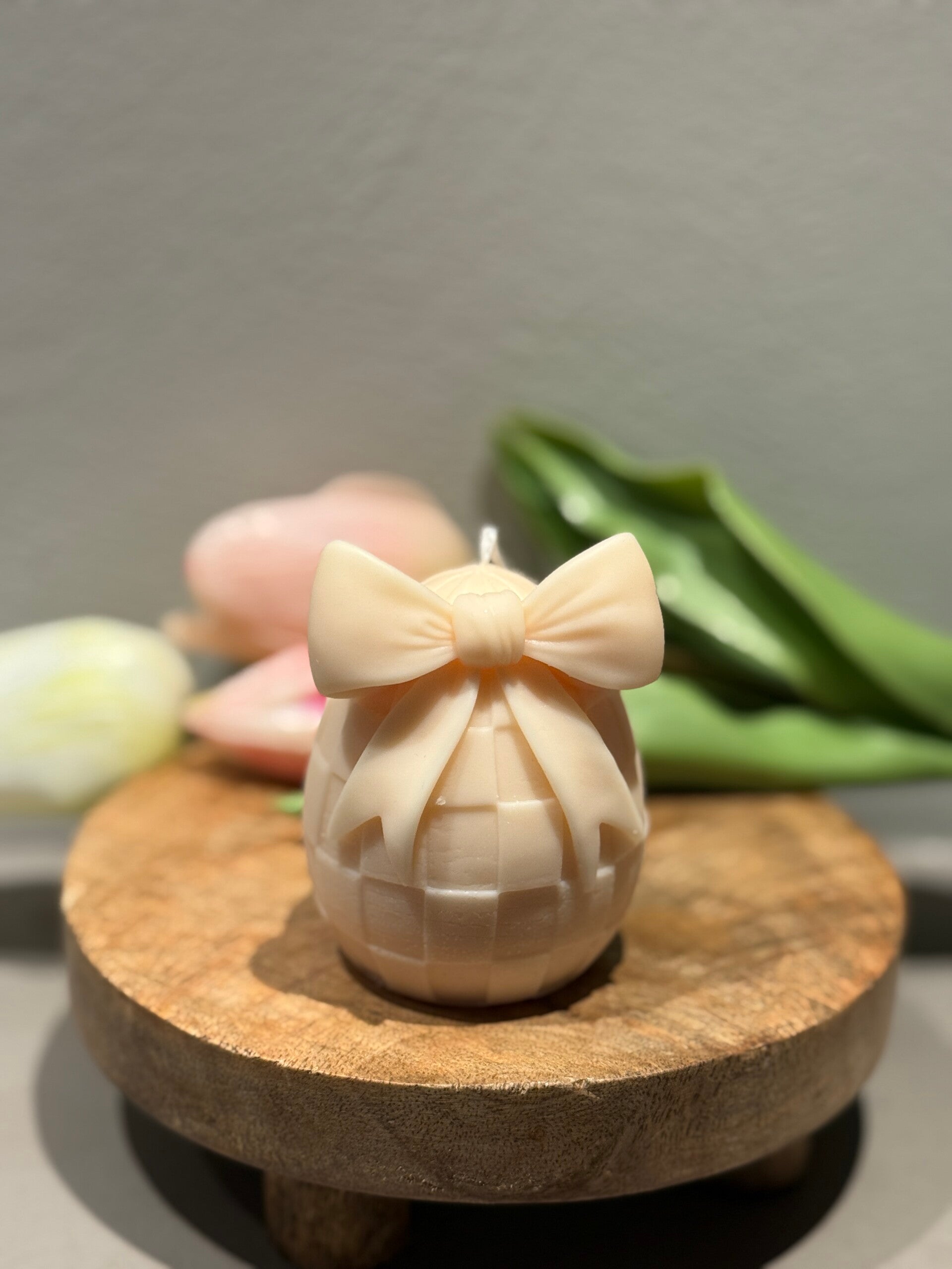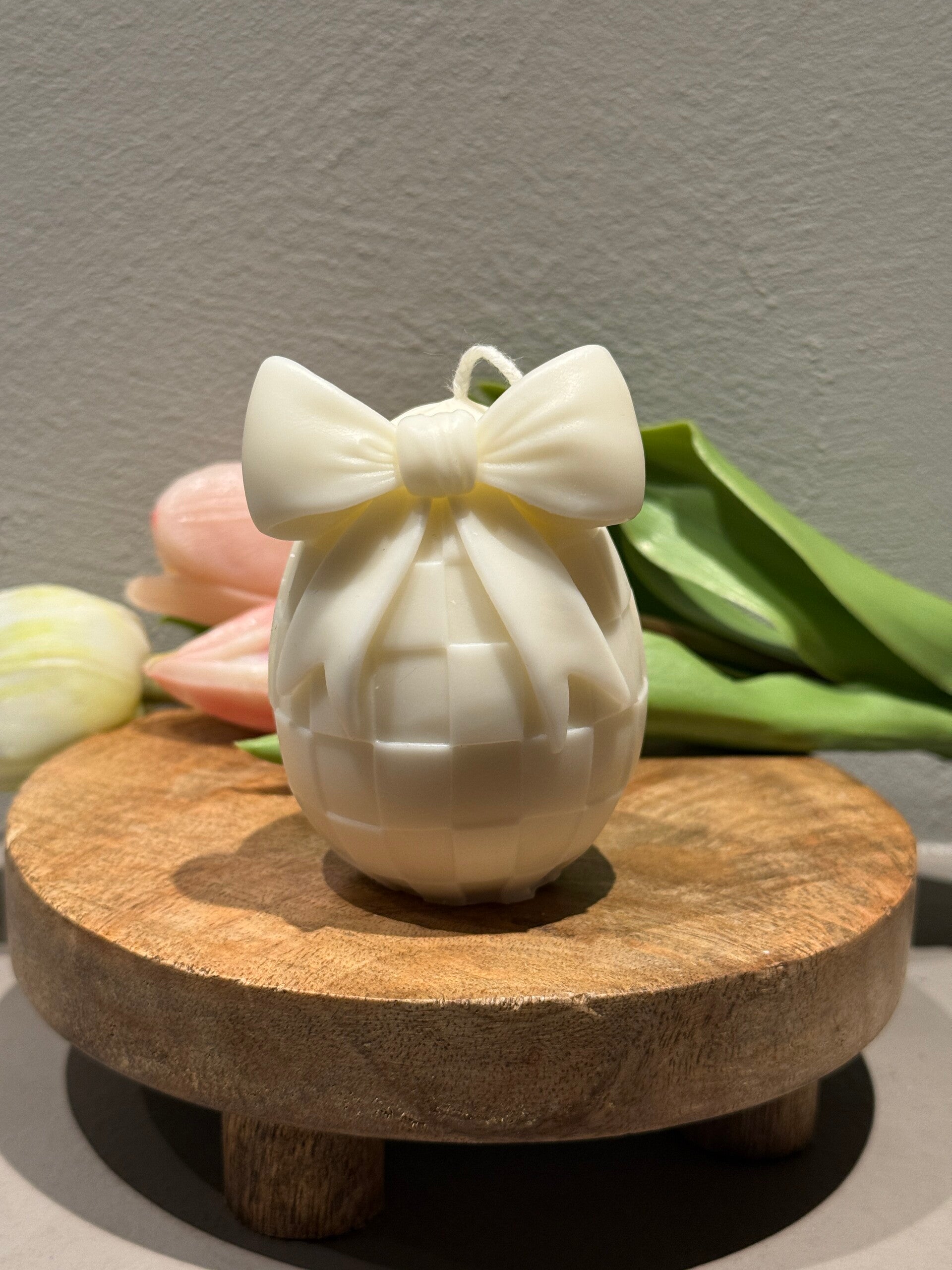 Paasei met ruitstructuur en bovenop een strik