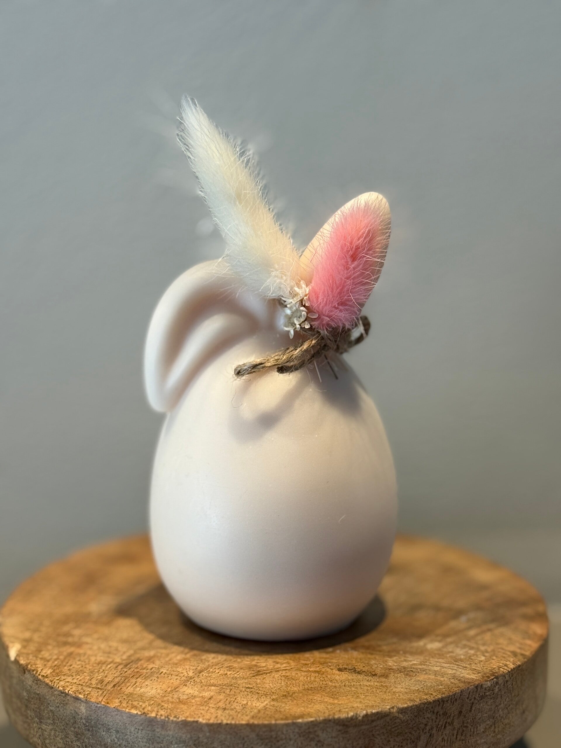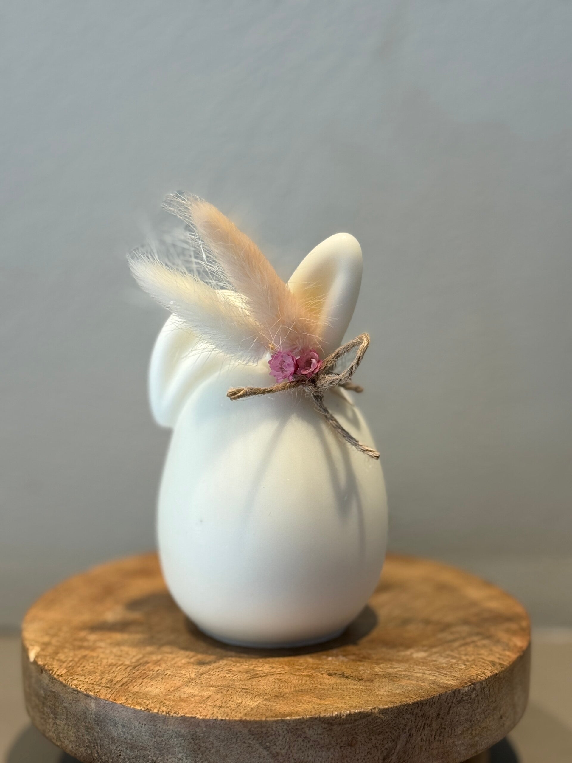 - Witte Bunny's zijn afgewerkt met beige droogbloemen.