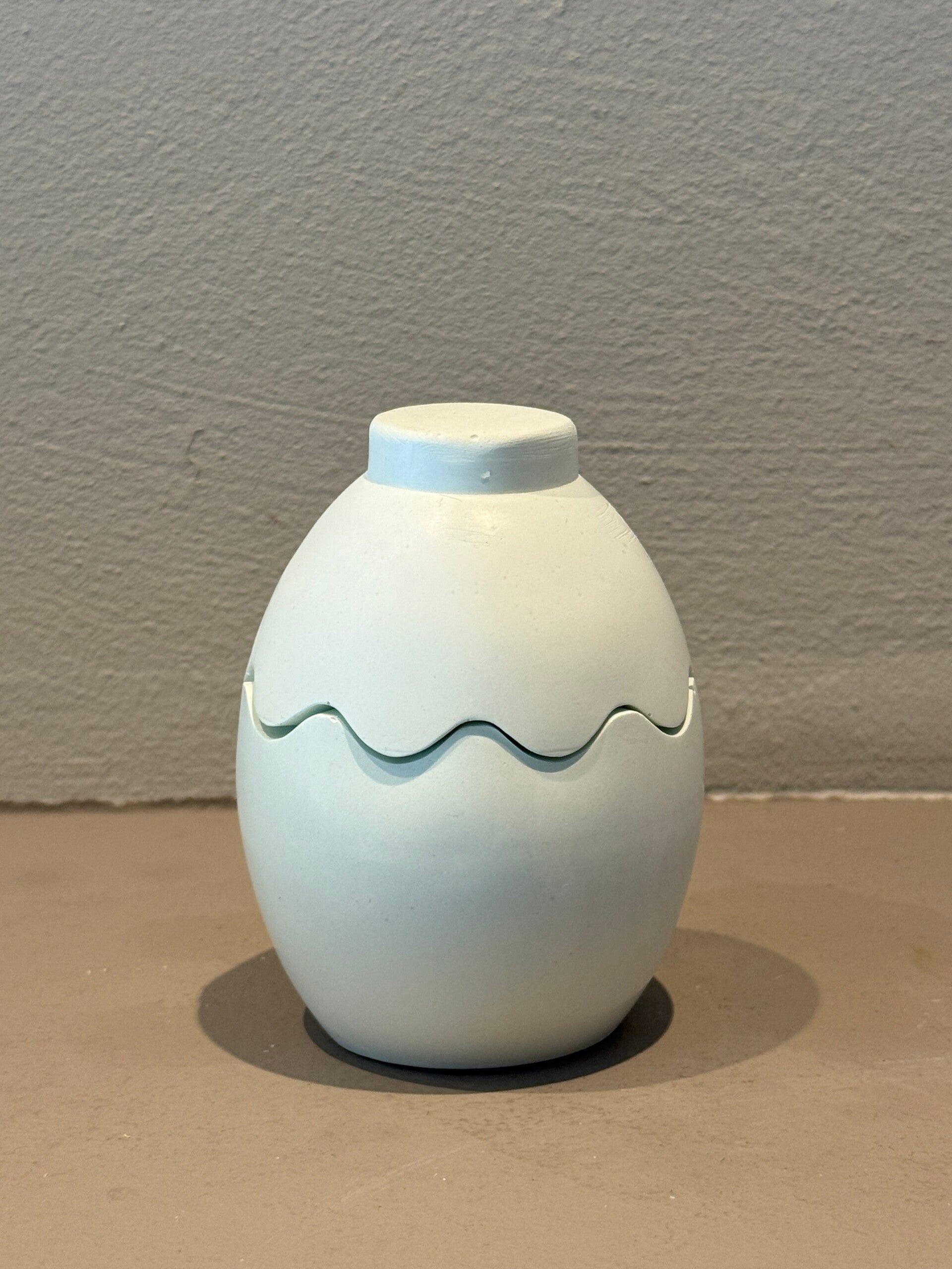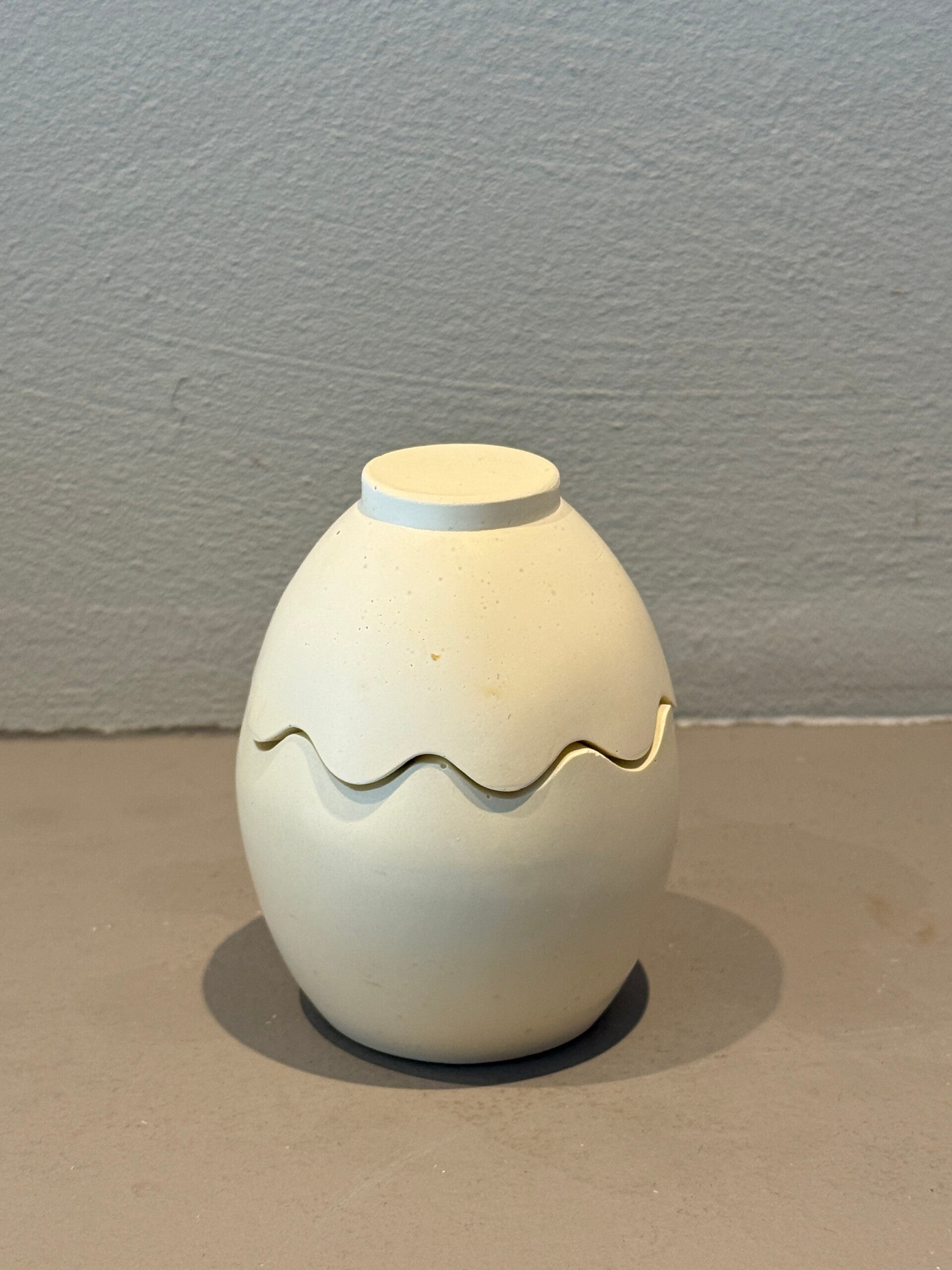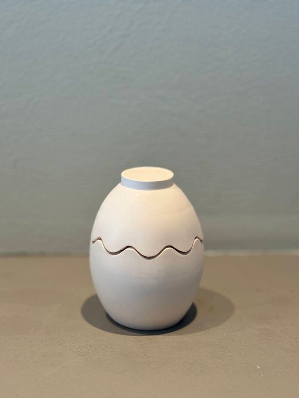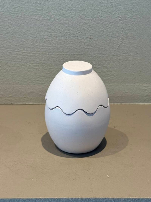 Handgemaakte eierschaal kaars van Raysin, gevuld met sojawas van 45gr. De kaars heeft een bijpassend deksel waardoor het geheel eruitziet als een gesloten ei wanneer de kaars niet brandt.